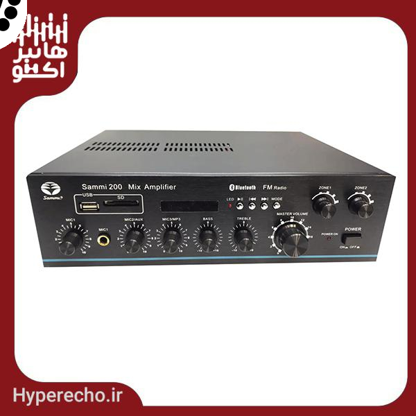 آمپلی فایر مرکزی سامی مدل SAMMI-200 نوعی آمپلیفایر اهمی ولتی محسوب میشود. این آمپلیفایر رومیزی با دارا بودن 3 کانال، قدرت خروجی 120 وات و اکولایزر قابل استفاده در سیستم صوتی مراکز تجاری، فروشگاهی، باشگاههای ورزشی و مراکز فرهنگی است. وجود ترانس مچینگ در آمپلی فایر ولتی اهمی، سیگنالهای صوتی با طی کردن فاصله طولانی بین ورودی و خروجی صد ا(میکروفون و باند یا بلندگو) دچار افت ولتاژ نخواهند شد و کیفیت صدای خروجی مطلوبی به کاربر میدهد.