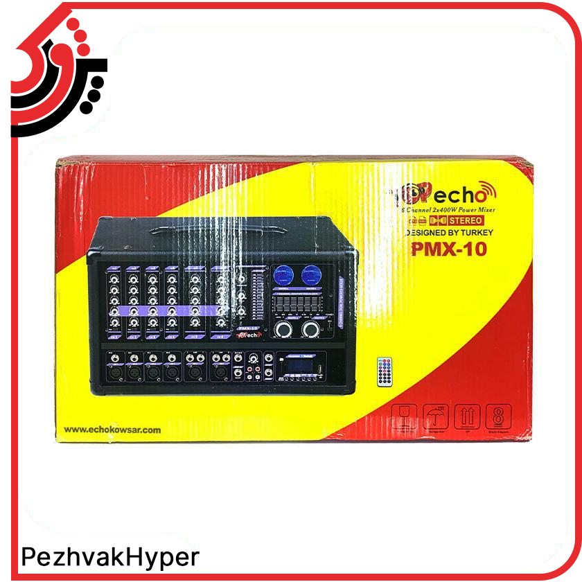 آمپلی فایر تاپ اکو مدل Top Echo PMX-10 از محصولات برند Top Echo محسوب می‌شود. PMX-10 مجهز به آمپلی فایر قدرتمند استریو کلاس H و پری امپی با امکانات بالا و دارای صدای بسیار شفاف و قدرتمند است که کیفیت صدایی بالا و طبیعی بدون نویز را تضمین می‌کند. 2 آمپلی فایر 400 واتی که در پیک قدرت، توان 800 واتی در هر آمپلی فایر را تولید می‌کند، مناسب راه اندازی 4 باند 15 اینچ و 8 باند 12 اینچ فول رنج می‌باشد و از این رو مراسمات تا 300 نفر را به راحتی پاسخگویی می‌کند. 10 کیلوگرم وزن آن و 200*440*270 ابعاد آن است. شما می‌توانید این محصول را با بهترین قیمت بازار از فروشگاه هایپر اکو خریداری کنید.