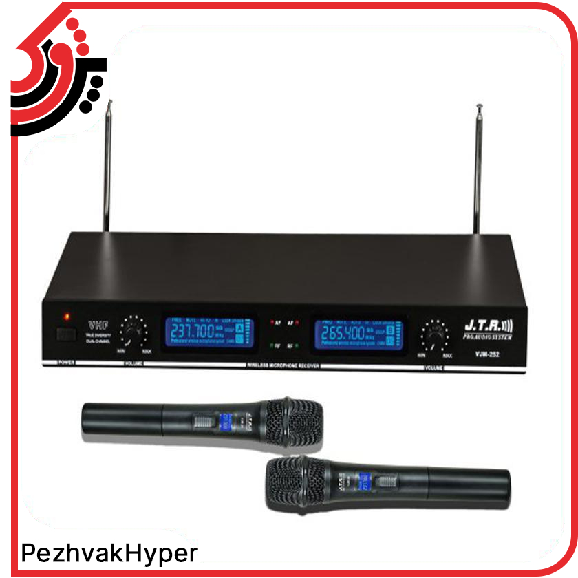 میکروفن بیسیم جی تی آر مدل JTR VJM-252 ساخت کمپانی محبوب JTR است. این مدل شامل 2 عدد میکروفن بیسیم دستی میباشد که قابلیت تغییر فرکانس کاری هریک از میکروفنهای بیسیم دستی با گیرنده از طریق سیگنال RF امکان پذیر میباشد. در این میکروفن بیسیم امکان راه اندازی هر 2 میکروفن به صورت مجزا وجود دارد و کاربر میتواند صدای هریک از میکروفنها را توسط ولوم کنترل موجود بر روی گیرنده تنظیم کند. وجود 2 عدد آنتن مجزا امکان دریافت سیگنال را بهبود میبخشد. گیرنده میکروفن بیسیم JTR VHF-252 توسط آداپتور موجود با برق شهری راه اندازی و هریک از میکروفنهای بیسیم جی تی آر توسط 2 عدد باتری قلمی تغذیه میشود. خروجی گیرنده میکروفن بیسیم جی تی آر مدل VHF-252 دارای 2 مدل کانکتور جک 1.4 و XLR جهت اتصال به میکسر میباشد. برد میکروفنهای بیسیم در فضای باز برابر 200 متر میباشد. ما امروز در این مطلب قصد داریم درباره میکروفن بیسیم دستی جی تی آر مدل JTR VJM-252 صحبت کنیم و به بیان ویژگیهای آن بپردازیم، با ما همراه باشید تا درباره این میکروفن بیسیم دستی جی تی آر اطلاعات جامعی به دست آورید. آگاهی از تمامی مشخصات محصول باعث میشود انتخاب آسانتر صورت بگیرد.