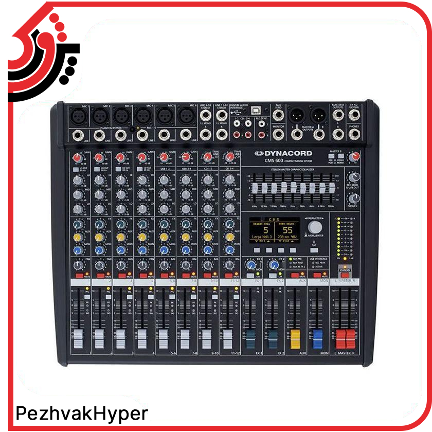 میکسر دایناکورد مدل DYNACORD CMS 600-3 محصول کمپانی دایناکورد است، و جزء تجهیزات صوتی این کمپانی محسوب می‌شود. شرکت دایناکورد همیشه بر روش‌های نوآورانه تاکید داشته و تمرکز اصلی آن تولید محصول با کیفیت و با دوام و مطابق با نیاز و استانداردهای جهانی است. شرکت دایناکورد به واسطه داشتن میکسر و پاور میکسرهای با کیفیت و بی‌رقیب، در سال‌های اخیر محبوبیت فراوانی در میان کاربران ایرانی پیدا کرده است. این میکسر دارای 12 کانال است. میکسر مدل DYNACORD CMS 600-3 مجموعه‌ای از افکت‌های متنوع دیجیتالی با قابلیت ترکیب 2 افکت همزمان را دارد. ما امروز در این مطلب قصد داریم درباره میکسر دایناکورد مدل DYNACORD CMS 600-3 صحبت کنیم و به بیان ویژگی‌های آن بپردازیم. با ما همراه باشید تا درباره این میکسر دایناکورد اطلاعات جامعی به دست آورید. آگاهی از تمامی مشخصات محصول باعث می‌شود انتخاب آسان‌تر صورت بگیرد. شما می‌توانید این محصول را از هایپر اکو با بهترین قیمت بازار تهیه کنید. برای اطلاعات بیشتر از این محصول به بخش مشخصات مراجعه کنید.