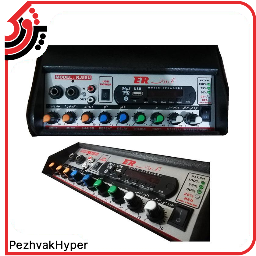 اکوی دیجیتال خوب آن تضمین کننده کیفیت برنامههای مذهبی شماست. وجود بلندگوی 6 اینچی باکیفیت و مدار آمپلی فایر مناسب، از نقاط قوت میباشد. قابلیت پخش MP3 برای این دستگاه مزیت مهمی بشمار میرود. RJ55 قابل استفاده در برنامههای آموزشی، مداحی، سخنرانی و… میباشد. این محصول دارای بلوتوث بوده و مجهز به رکوردر (ضبط صدا بر روی فلش) میباشد. شما میتوانید این محصول را از فروشگاه هایپر اکو با بهترین قیمت بازار تهیه کنید. برای مشاهده سایر محصولات برند روژان، به لینک محصولات روژان مراجعه کنید.
