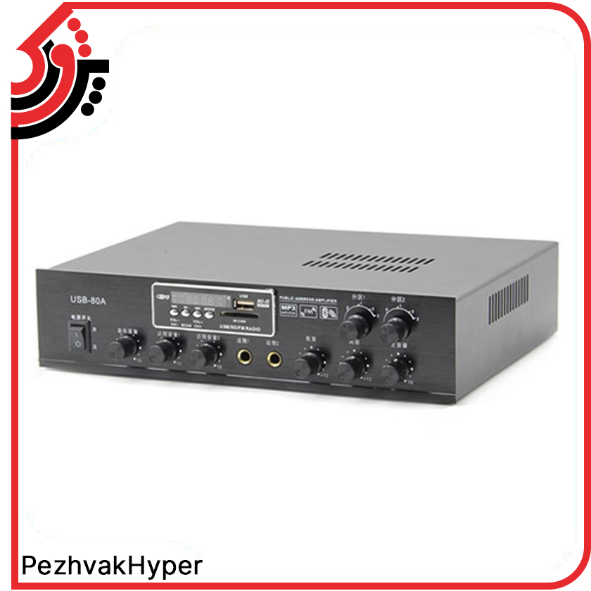 آمپلی فایرها یکی از مهمترین تجهیزات صوتی برای سیستمهای صوتی است. در بسیاری از مکانها، طراحین صدا ترجیح میدهند از باندهای پسیو به جای باندهای اکتیو استفاده کنند و به همین دلیل استفاده از آمپلی فایر در این مکانها ضروری میشود. باند اکتیو، باندی است که خودش آمپلی فایر دارد و باند پسیو نیاز به آمپلی فایر جداگانه دارد. به عنوان مثال در سیستم صوتی رستوران، باشگاه، مساجد، هیئتها، تالارها و باغ تالارها، فروشگاهها، بیمارستانها، مراکز آموزشی، مراکز اقامتی و… در برخی موارد نیاز به آمپلی فایر داریم. ما در این مطلب قصد داریم درباره آمپلی فایر اهمی ولتی زیکو مدل Zico USB 80AE صحبت کنیم، چرا که آگاهی از تمامی مشخصات محصول باعث میشود انتخاب آسانتر صورت بگیرد. شما میتوانید این محصول را از هایپر اکو با ضمانت بهترین قیمت بازار و اصالت کالا تهیه کنید. برای مشاهده سایر آمپلی فایرهای برند زیکو، به صفحه آمپلی فایر زیکو مراجعه کنید.